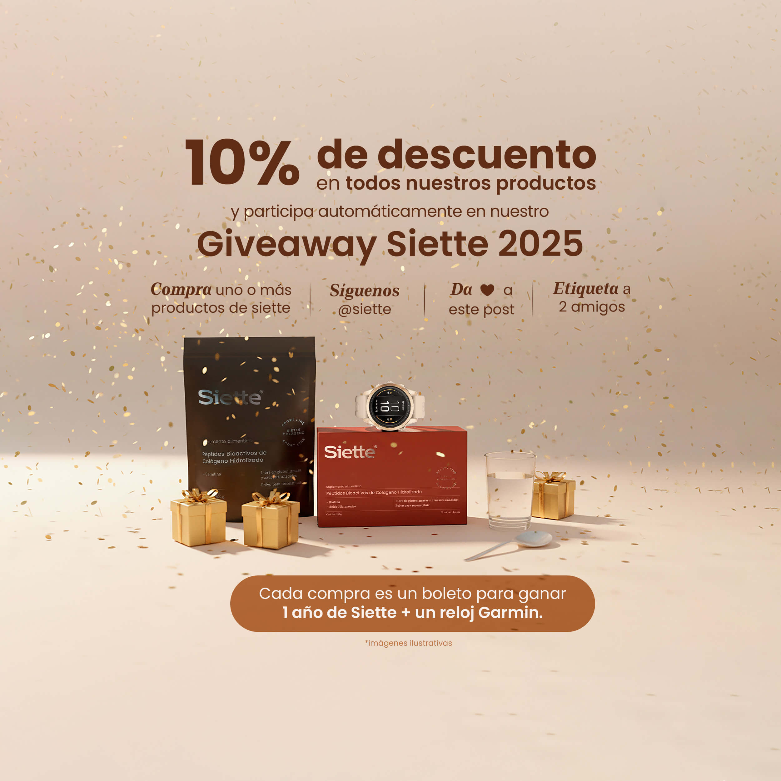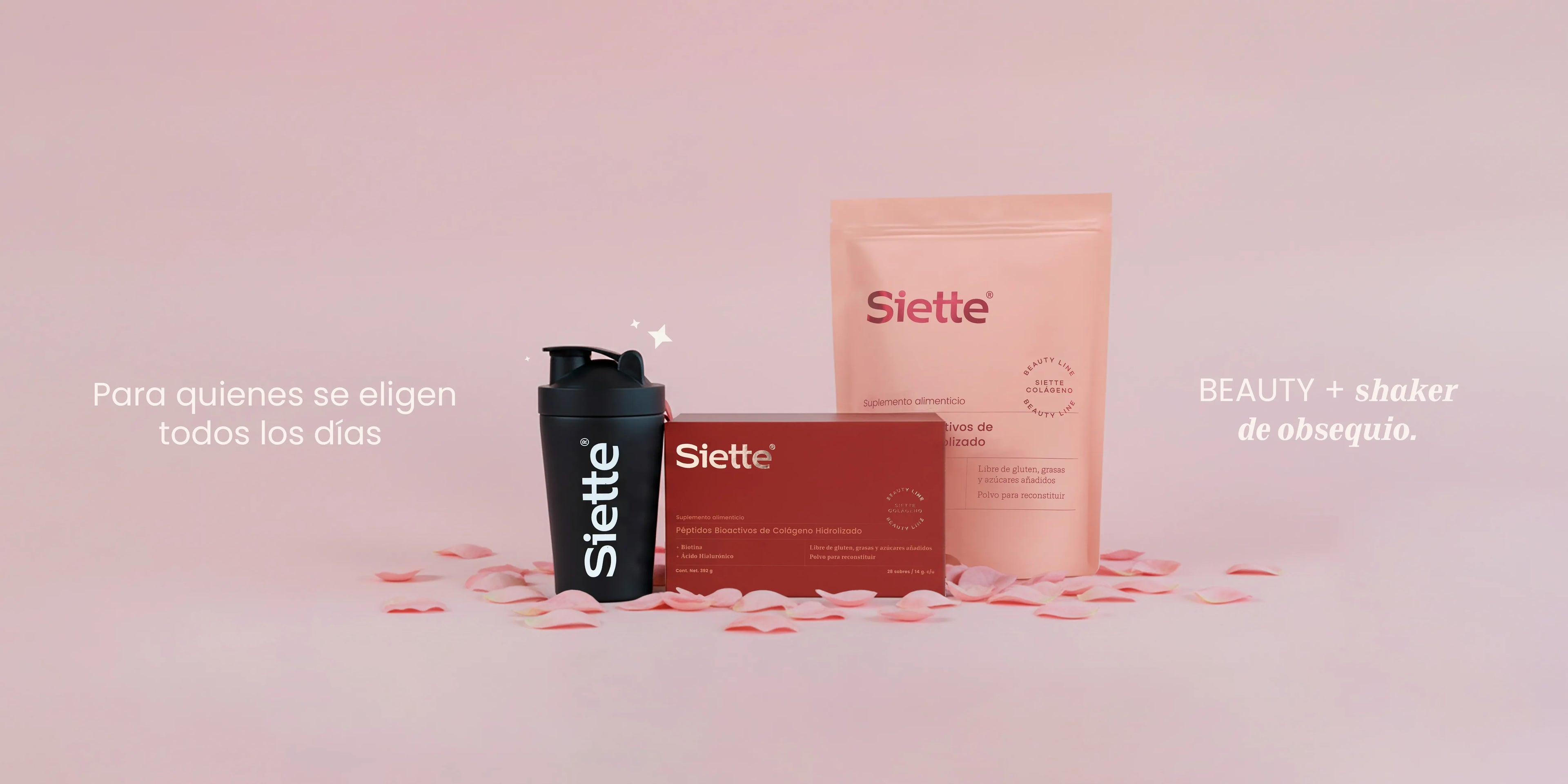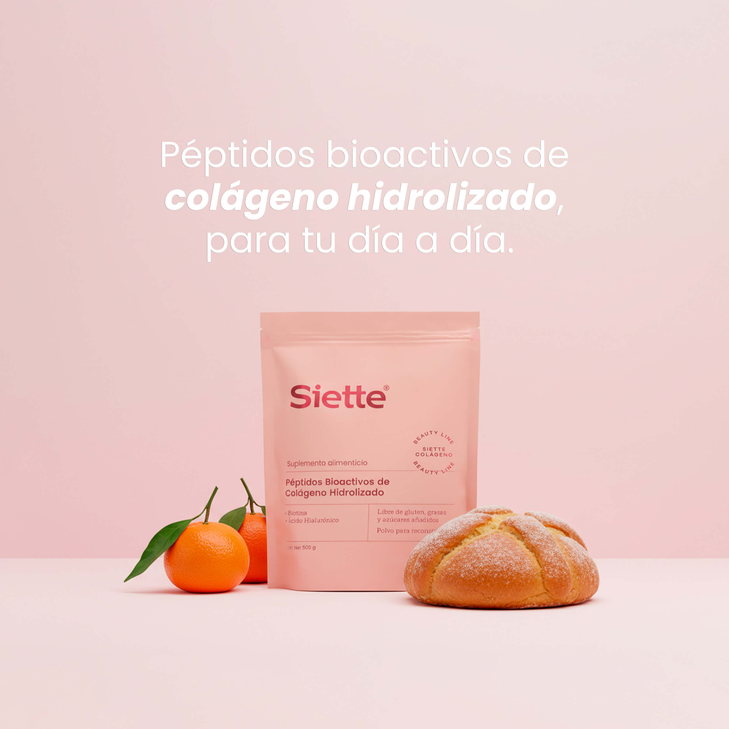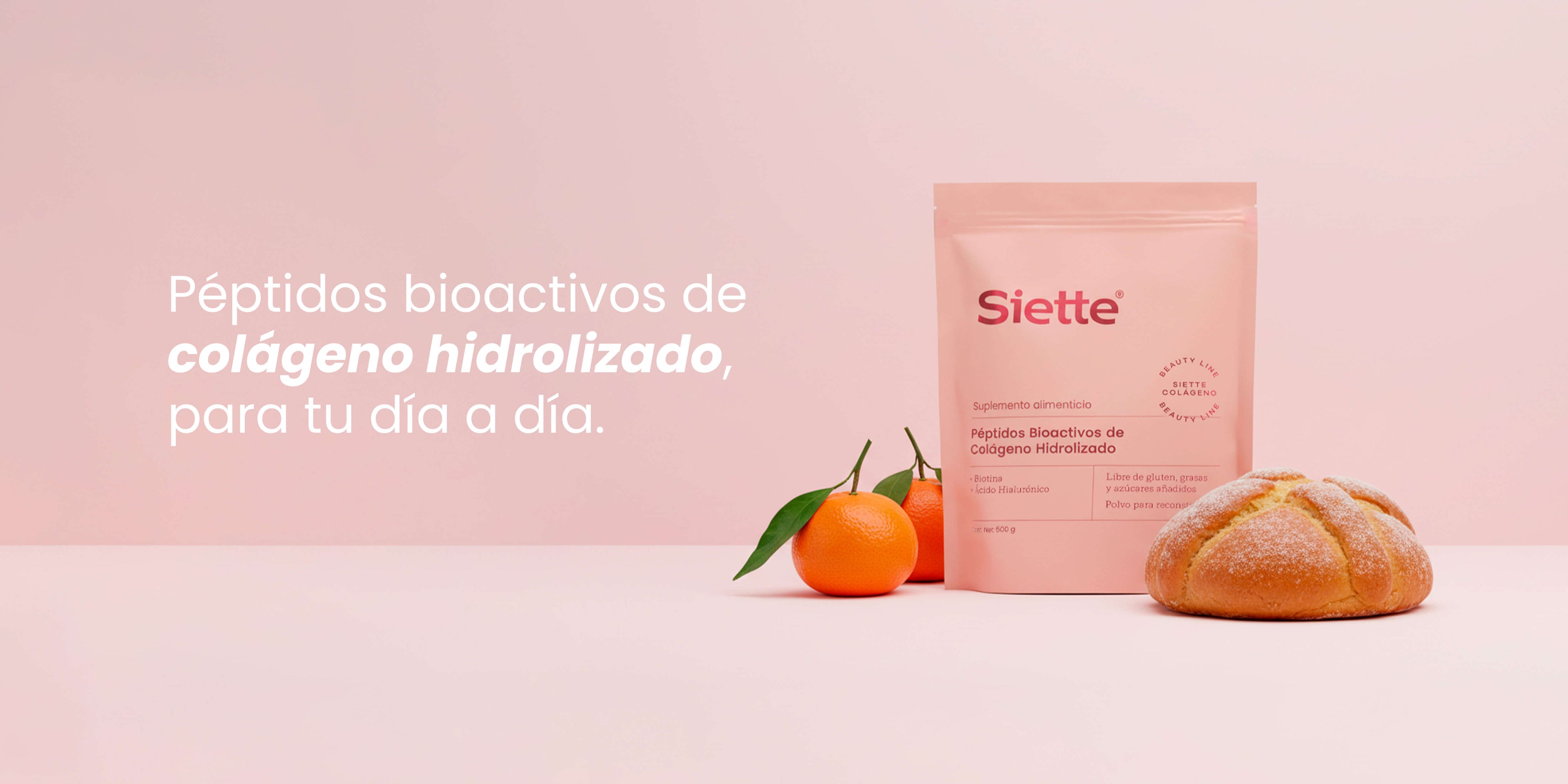 En Siette Beauty, nuestros productos de belleza están enriquecidos con péptidos bioactivos de colágeno hidrolizado, esenciales para la salud y el brillo de tu cabello, piel y uñas.