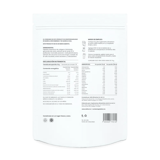 Combinado con el colágeno, puede ser beneficiosa especialmente para la salud articular. Ayudando a reducir la inflamación y el dolor en las articulaciones